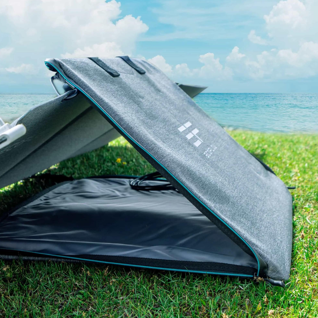 On the go? Keep your panel folded up and protected while you hit the road. Save valuable trunk space and go easy knowing your panel is safe. Once you arrive, simply unfold, prop up and start generating clean, green electricity.